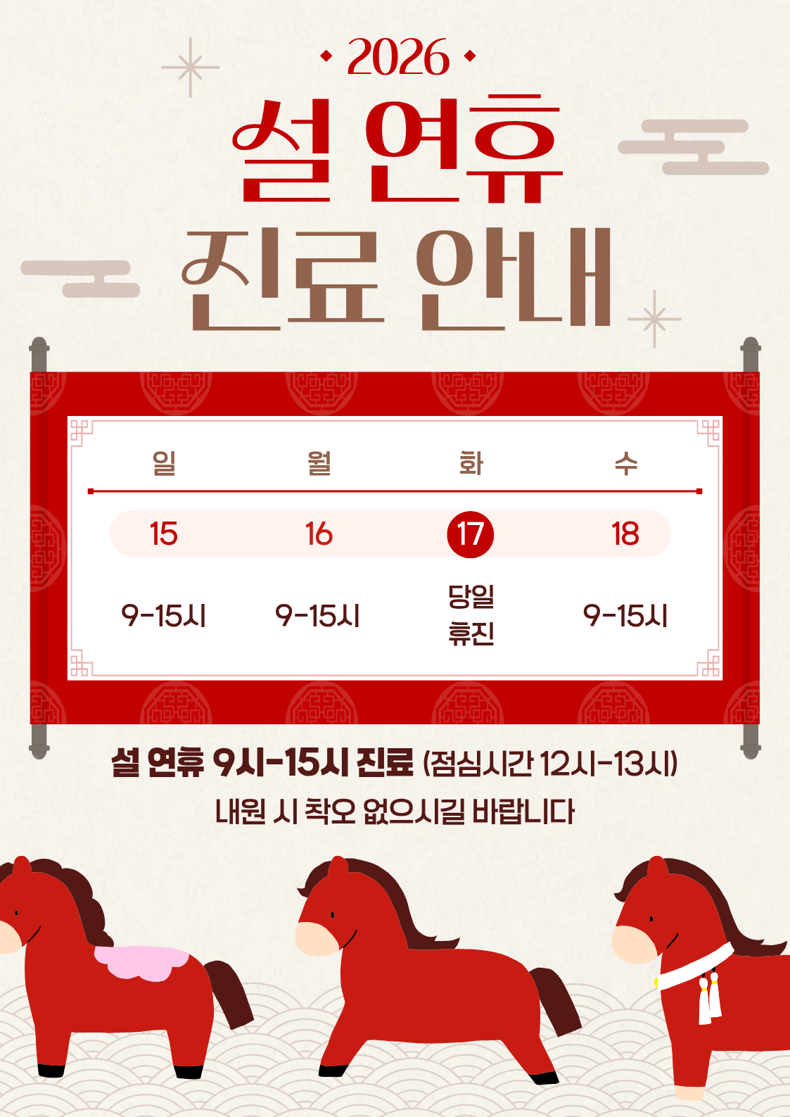 ※ 설날, 추석 당일 휴진 (대체공휴일 진료합니다.)